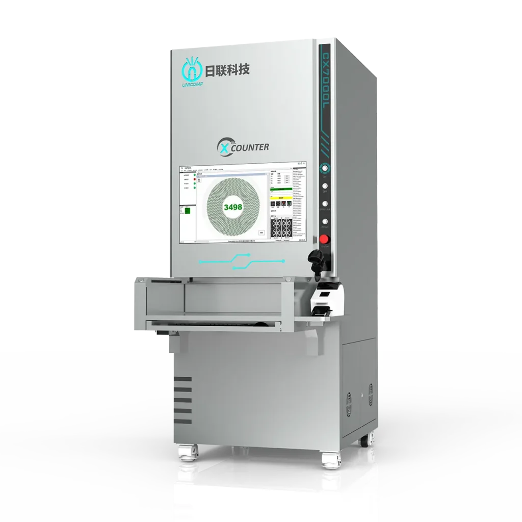 Nagy pontosságú, roncsolásmentes alkatrész-számláló berendezés, amely automatikusan és gyorsan végzi a különböző méretű tekercsek és szalagok ellenőrzését (~12 másodperc/tekercs), akár 01005-ös méretű alkatrészekig. Egygombos kezelése egyszerű használatot biztosít, miközben ≥99,9%-os pontosságot nyújt. A gép automatikusan csatlakozik ERP, MES és raktározási rendszerekhez, továbbá képes címkék beolvasására, nyomtatására. A sugárzásbiztos, árnyékolt burkolat és a valós idejű szivárgás-ellenőrzés garantálják a maximális biztonságot a röntgenalapú vizsgálat során. Ideális megoldás bejövő ellenőrzéshez és készletkezeléshez. 1-4 tekercs egyidejű számlálása.