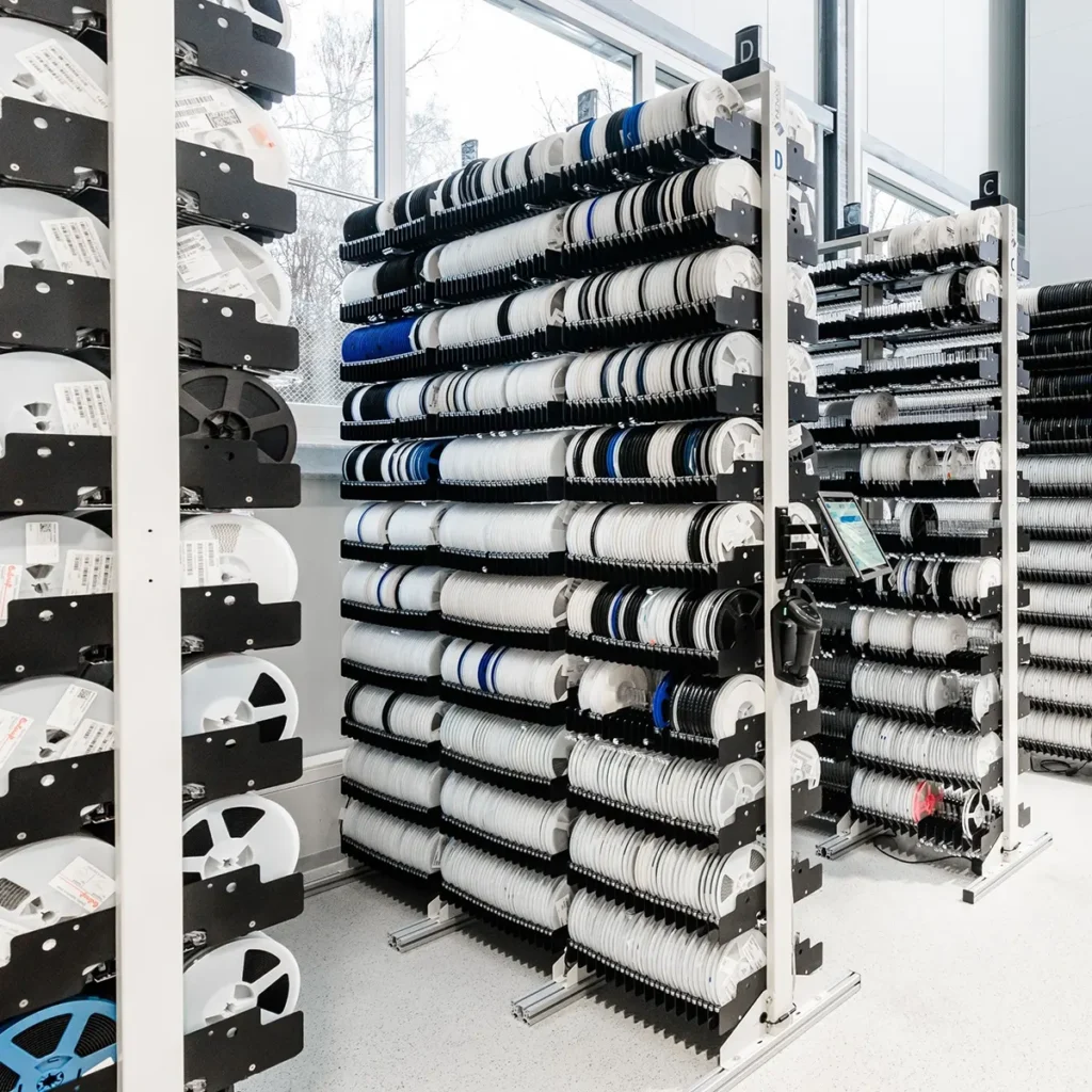 A rack alkalmas 7–15” átmérőjű és 8–56 mm széles tekercsek tárolására, de egyedileg testre szabható más egyéb csomagolású: például csövek, tálcák vagy mechanikai alkatrészek – elhelyezésére is.