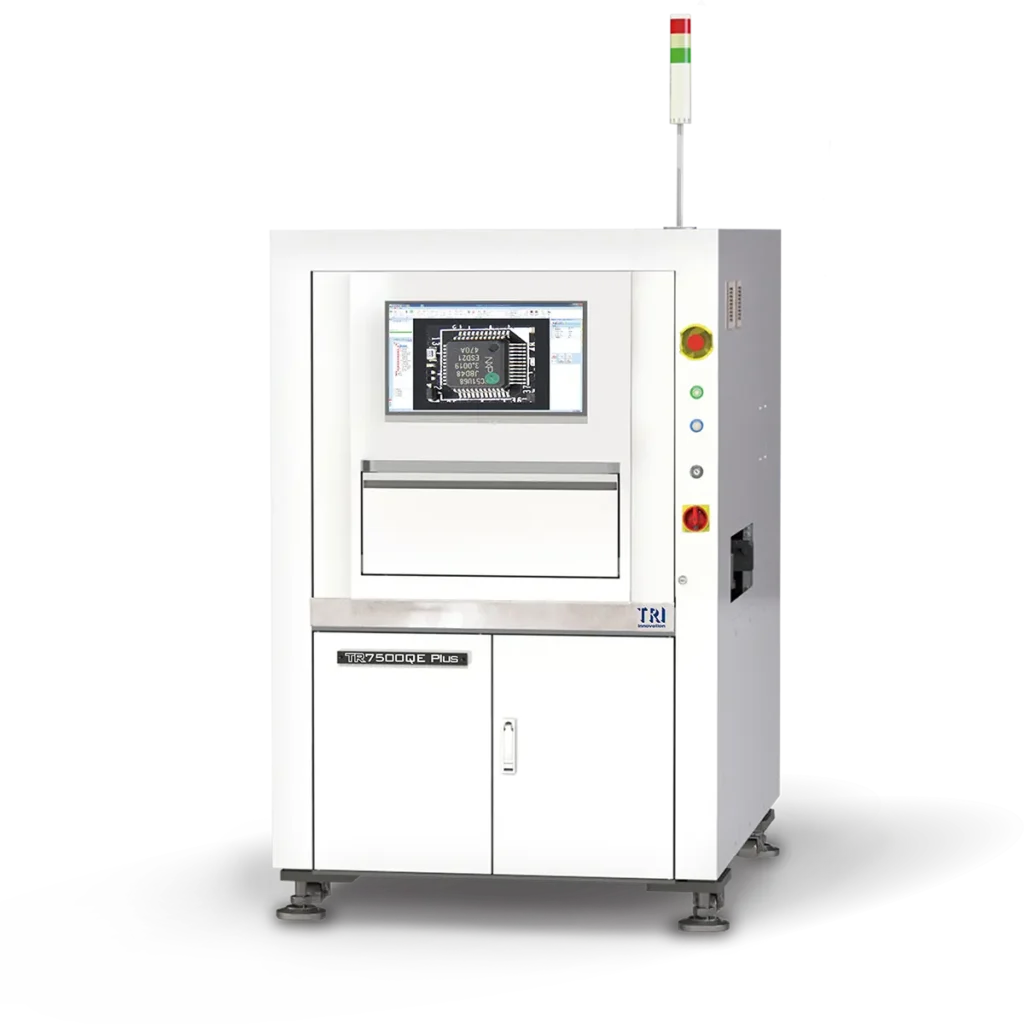 A TR7500QE Plus egy fejlett, ötkamerás, több nézeti szögből dolgozó 3D AOI platform, amely a legújabb AI-alapú algoritmusokkal és metrológiai pontosságú mérésekkel biztosít megbízható hibafelismerést – akár rejtett forrasztási hibák, belső hídképződések vagy felemelkedett alktarészlábak esetén is. A rendszer Stop-and-Go képalkotási módszert, true color LED és koaxiális világítást, valamint digitális 3D vetítési technológiát alkalmaz.